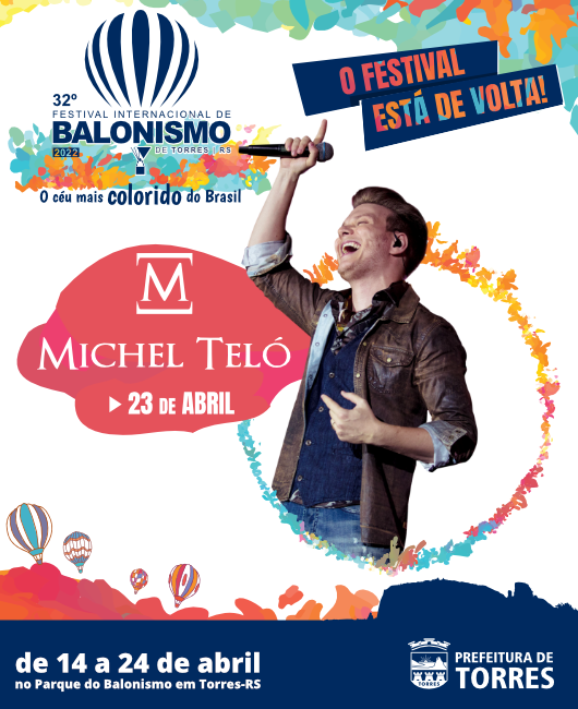 Ingressos disponíveis em https://www.bilheteriadigital.com/32o-festival-internacional-de-balonismo-de-torres-rs-michel-telo-23-de-abril