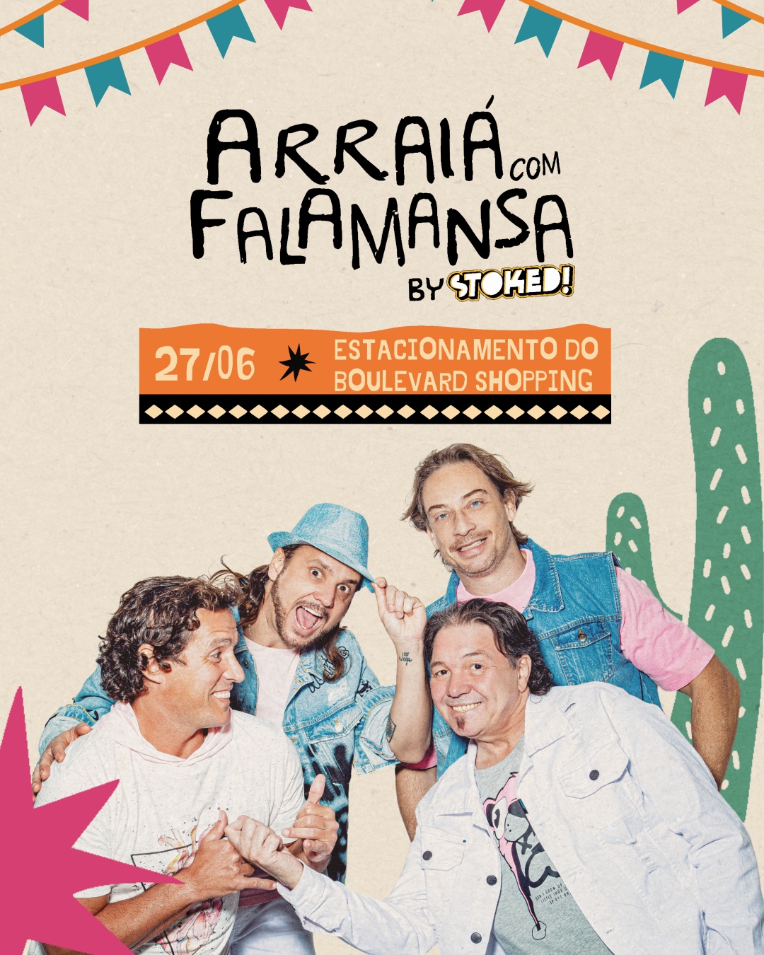 A banda Falamansa, liderada pelo carismático Tato, chega com tudo pra fazer geral dançar ao som de clássicos como “Xote dos Milagres”, “Rindo à Toa” e “Xote da Alegria”. É arrasta-pé, alegria e clima junino do jeito que a gente ama!