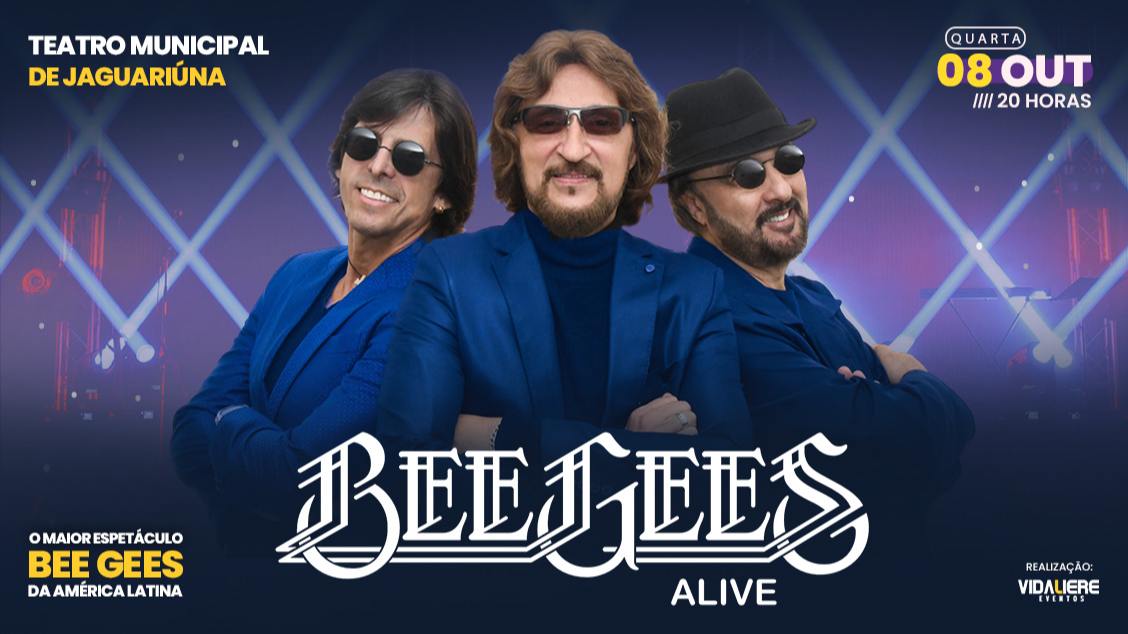Considerada a principal banda em tributo aos Bee Gees do mundo, a “Bee Gees Alive” completa 25 anos de uma carreira sólida com shows por todo o Brasil. O espetáculo reproduz fielmente a mítica banda dos irmãos Gibb, com impecáveis performances de interpretação que conquistam absoluto sucesso em todos os locais que apresentam o tributo.