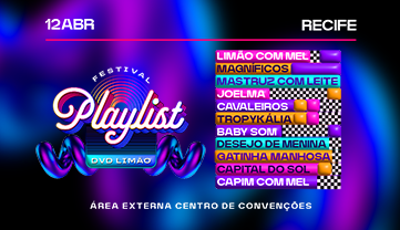 Ingressos disponíveis em https://www.evenyx.com/festival-playlist-recife