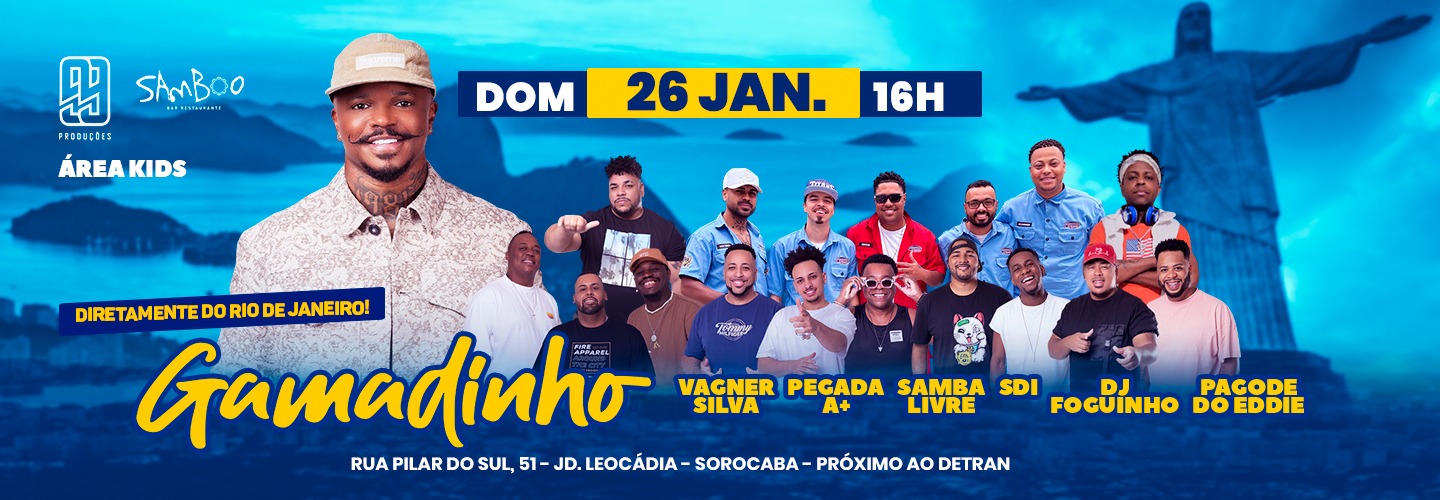 Vem aí dia 26/01 pela primeira vez em Sorocaba Cantor Gamadinho diretamente do Rio de Janeiro cantando todos seus sucessos na casa mais badalada SAMBOOBAR + de 5 atrações será uma tarde inesquecível venha curtir com a gente ❤️🕺