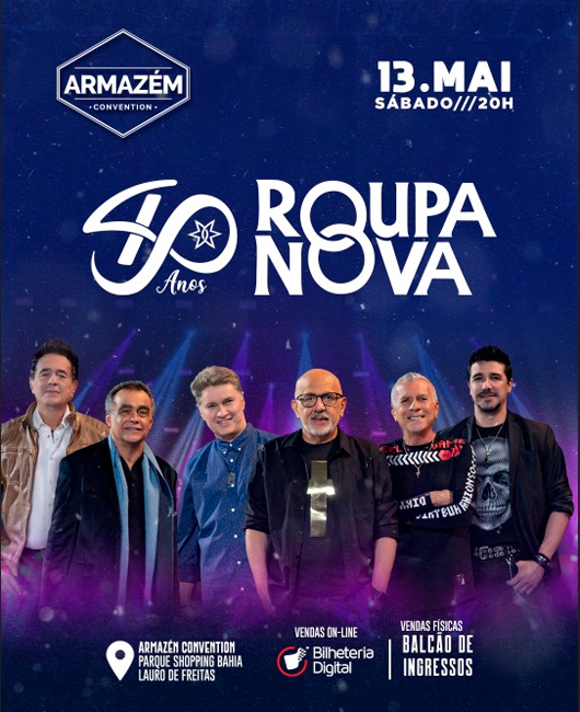 Ingressos disponíveis em https://www.bilheteriadigital.com/roupa-nova-comemorando-40-anos-13-de-maio