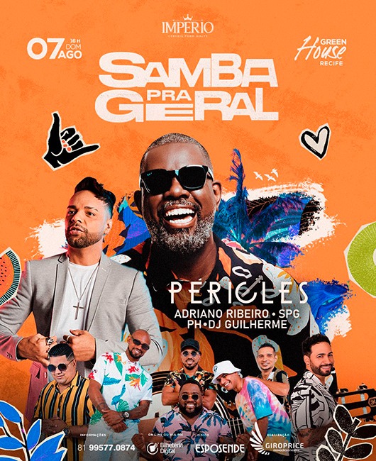 Ingressos disponíveis em https://www.bilheteriadigital.com/samba-pra-geral-pericles-07-de-agosto