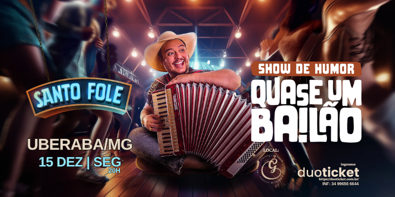 Ingressos disponíveis em https://duoticket.com.br/evento/6069/Santo-Fole-em-Uberaba-Show-de-Humor-Quase-Um-Bailo